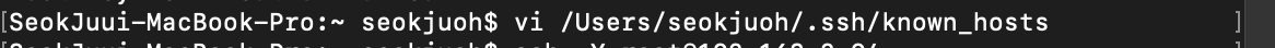 나와있는 해당경로 (/Users/seokjuoh/ .ssh/known_hosts) 에 있는 RSA 키값을 지워주면 된다고 한다 ㅎㅎ