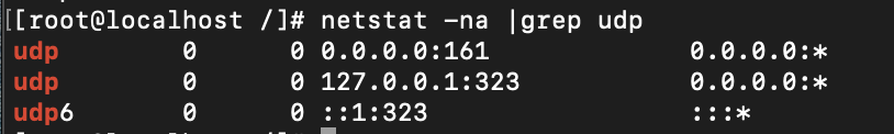 netstat 명령(netstat 안될 시 yum install net-tools -y 로 install) 으로 udp 로 161이 실행중인지 확인합니다 (SNMP 통신 -> UDP/161)