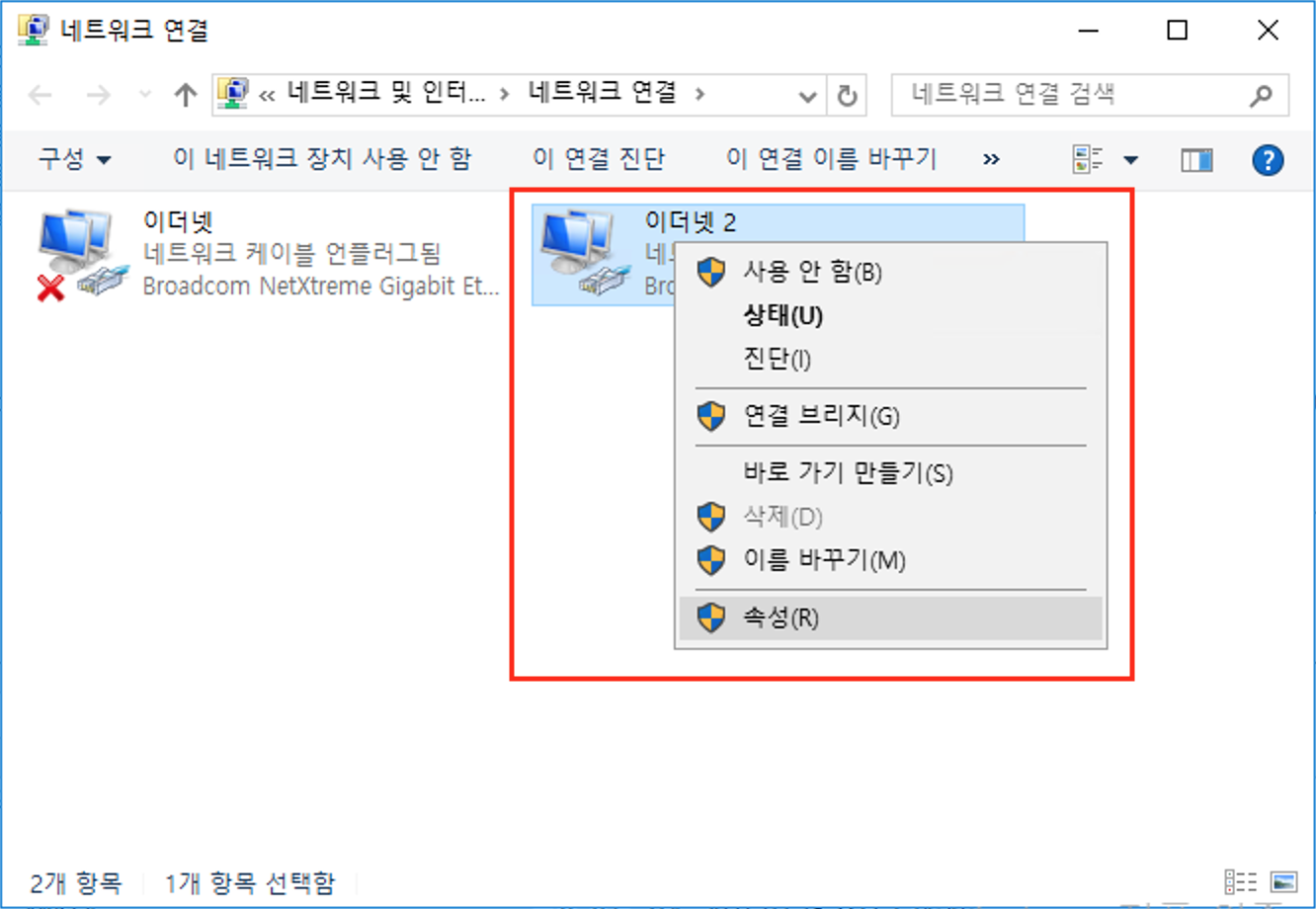 2. 마우스 오른쪽 버튼 -> 속성
