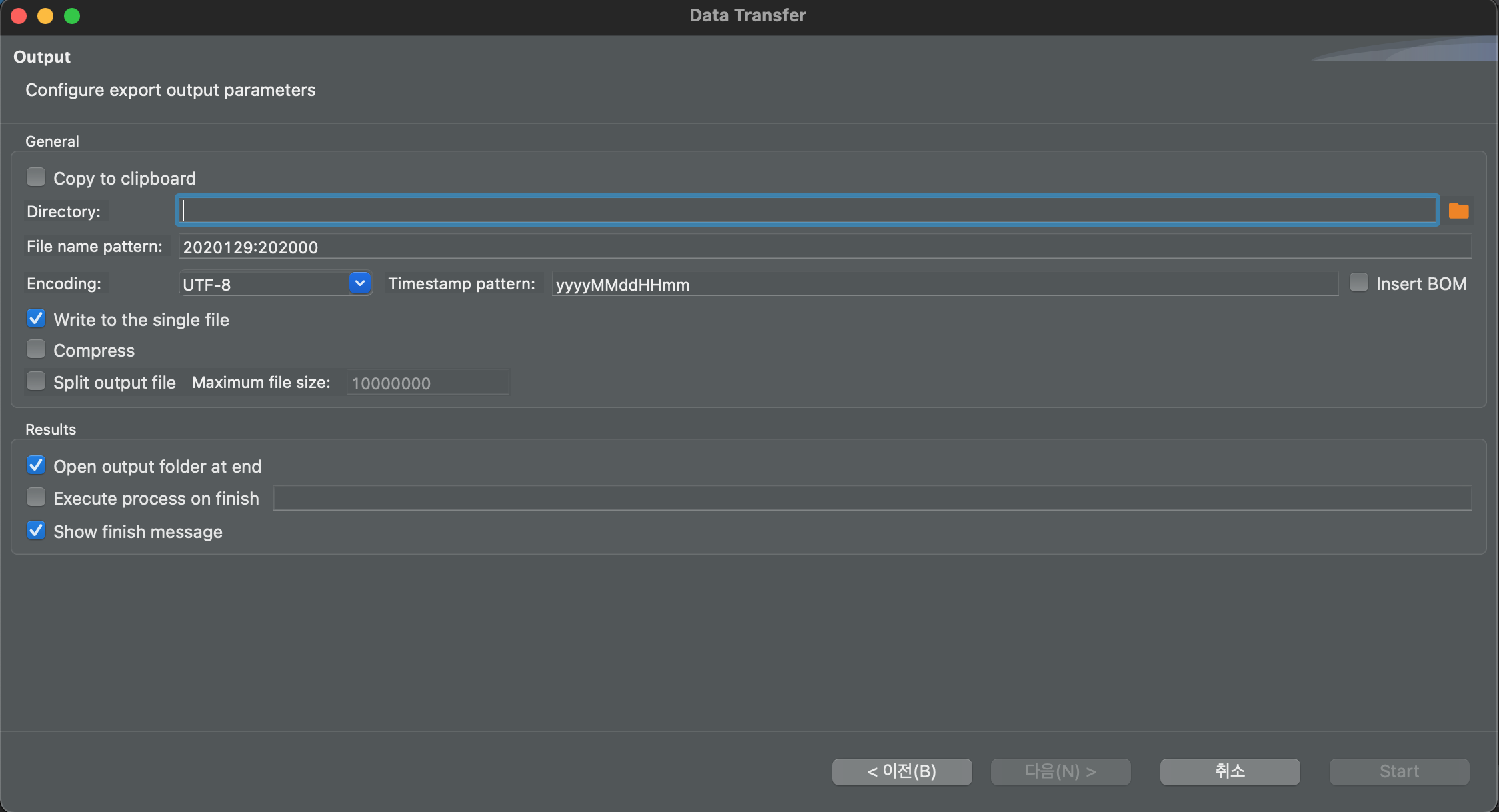 저장하고싶은경로와 파일 이름을 설정 -> Write to the single file 부분 체크 -> Start