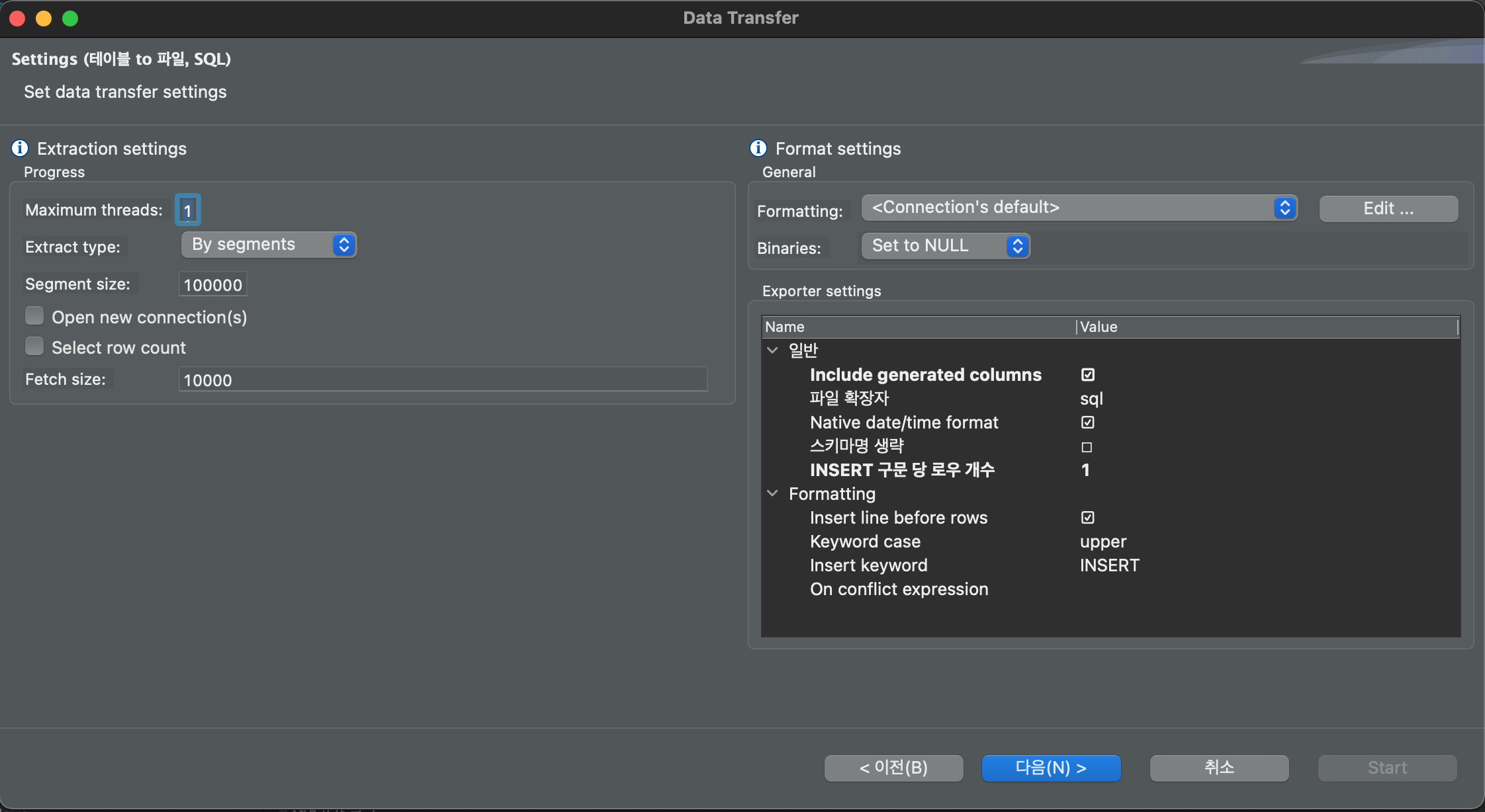 SQL | SQL INSERT문으로 내보내기 -> 다음